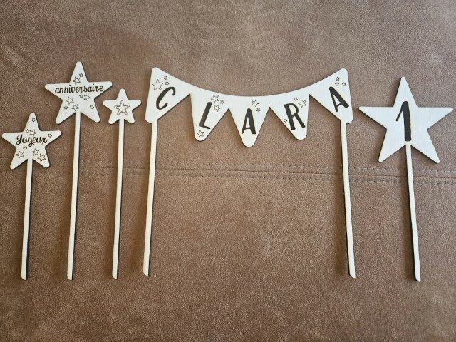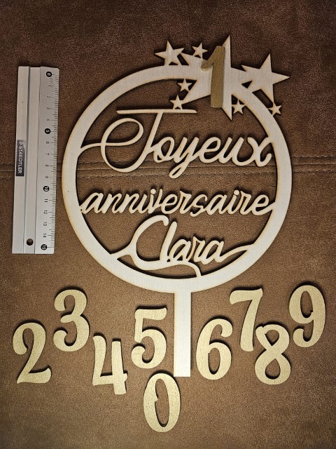 Ajoutez une touche unique à vos gâteaux d’anniversaire avec mes toppers en bois que je dessine avec soin selon vos envies. Le chiffre est interchangeable, permettant de réutiliser le topper année après année. Et pour une attention encore plus spéciale, personnalisez-le avec le prénom de la personne célébrée.